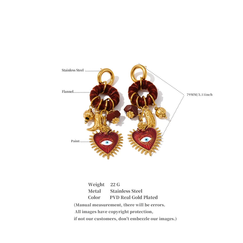 | Quand passion artistique et luxe moderne se rencontrent. Ces boucles d'oreilles pendantes audacieuses marient avec élégance textures, alliant la douceur de la flanelle à la finesse des breloques plaquées or pour un style vintage affirmé. Parfaites pour apporter une touche bohème chic et authentique à toutes vos tenues, qu'elles soient de soirée ou plus sophistiquées. |