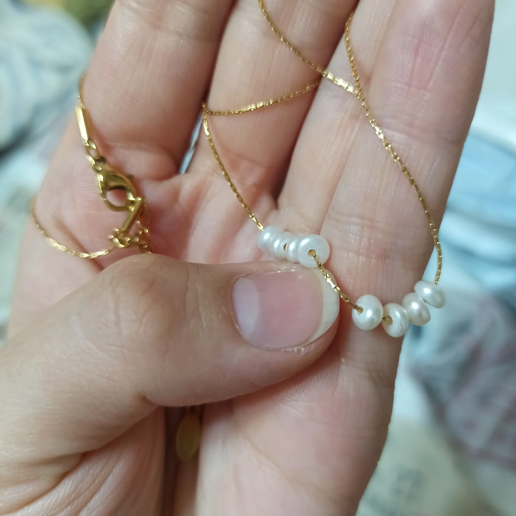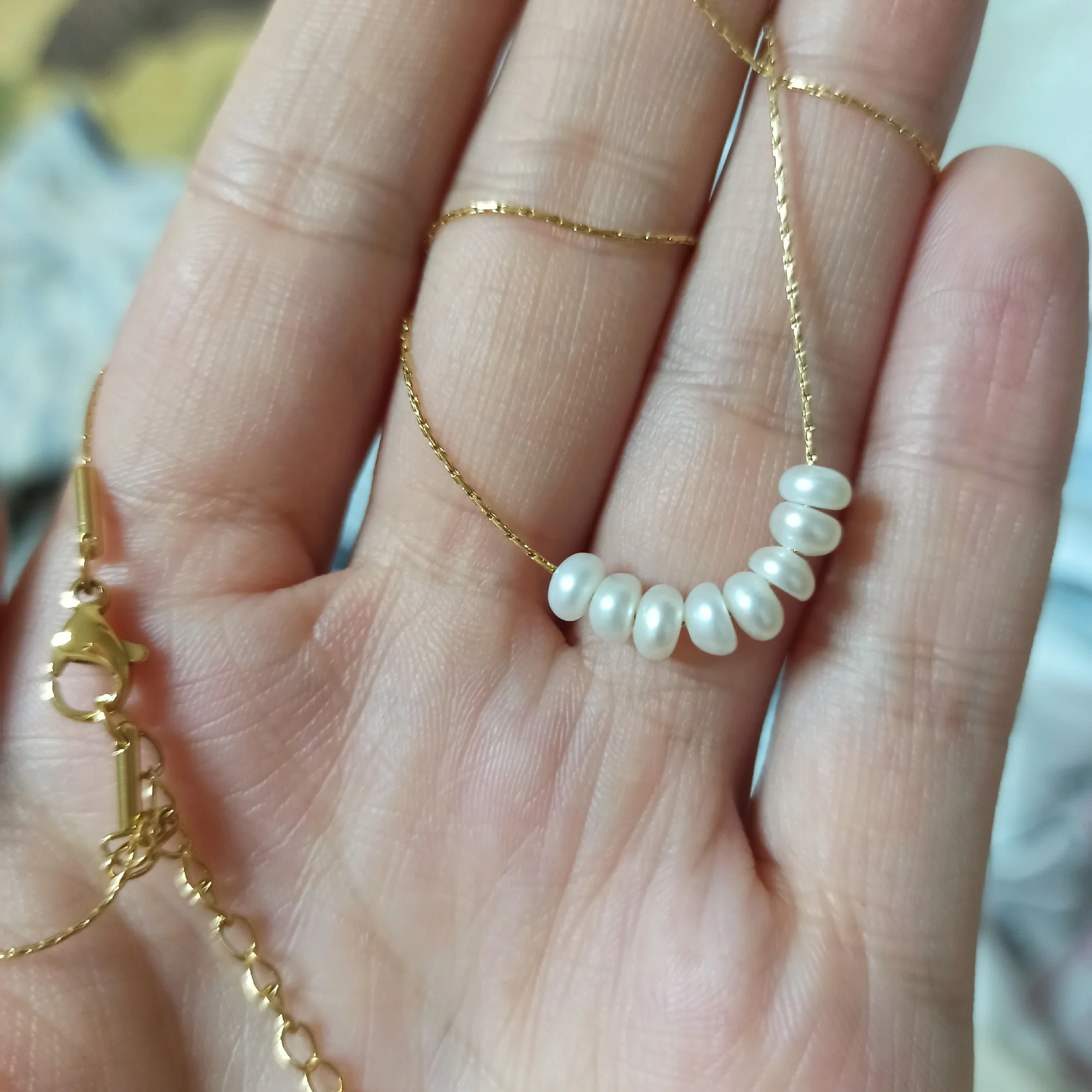 The Luminous Row necklace is a delicate balance of organic beauty and industrial strength. Featuring a curated string of genuine natural pearls on a sleek, whisper-thin chain, this piece offers a refined "Quiet Luxury" aesthetic that transitions effortlessly from morning coffee to evening galas.